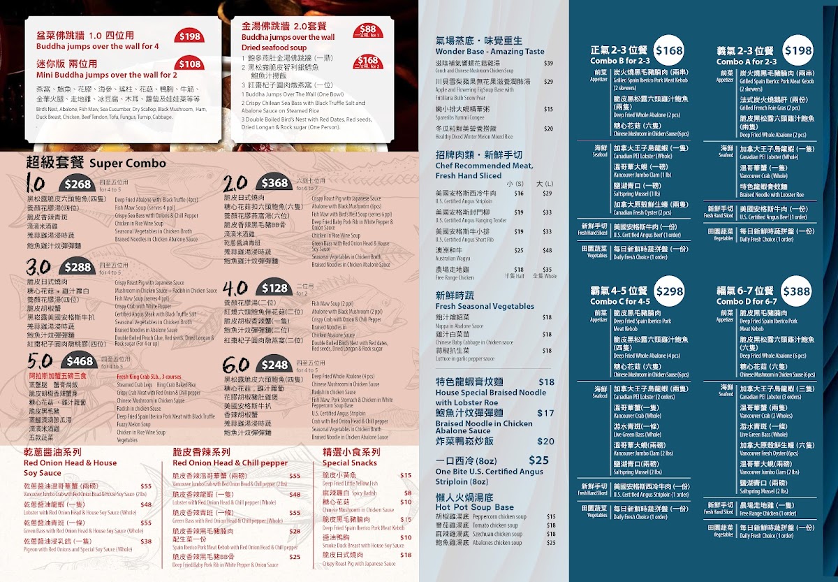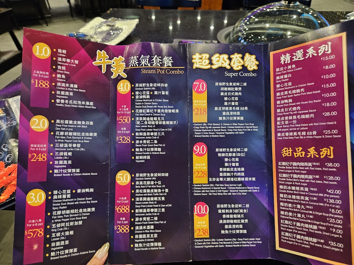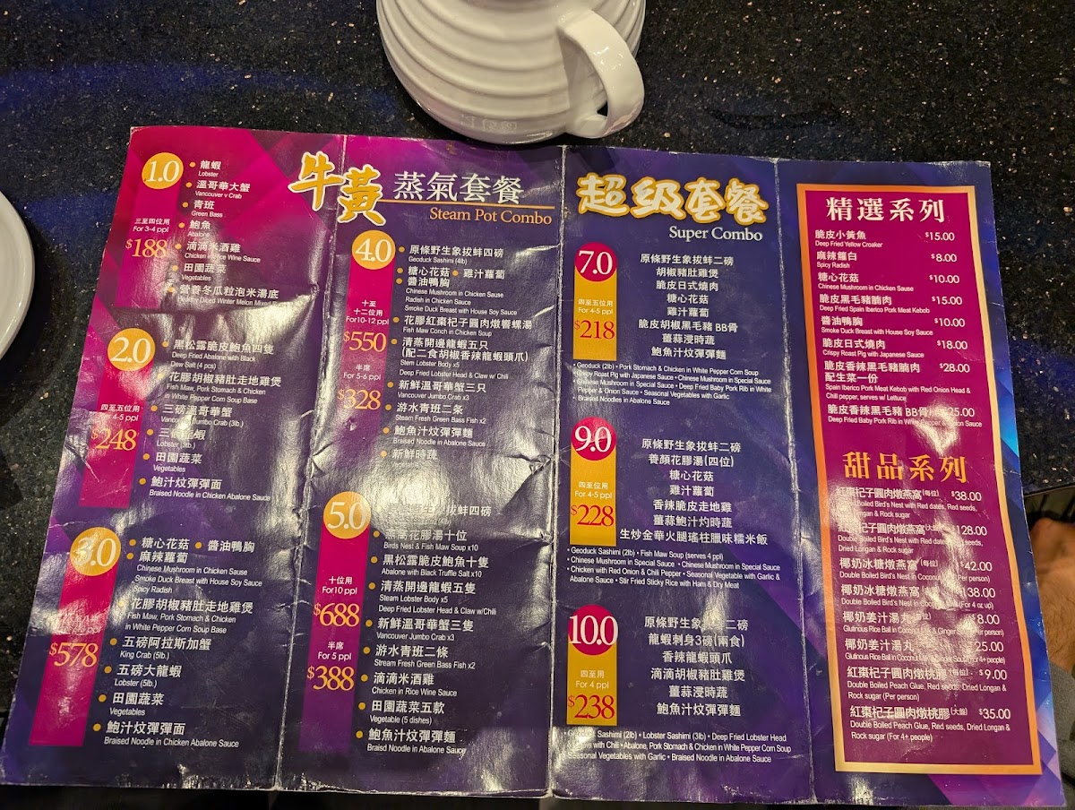You’ll find selections like rich Lobster Bisque and creative options such as Make Your Own Sauce, allowing diners to tailor flavors to their preference. Specialty items including Geoduck Sashimi Deluxe and Deep Fried Abalone with Black Truffle showcase the restaurant’s focus on quality seafood. For fans of comforting warmth, bowls like 金牌濃雞湯拉麵 and delicate broths provide satisfying choices on cooler days.